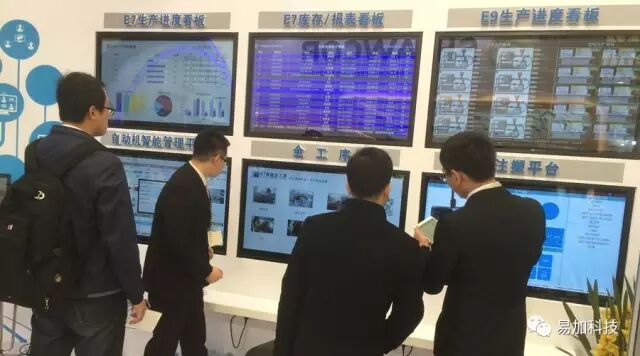 易加科技的软件工程师们运用“线上线下”的展示方式把真实的线束加工工厂解决方案呈现给了观展者,生产现场的各种电子看板更是直接在现场的高清显示屏上循环播放,打开现场已安装好的企业管理者APP,更是能够直观的感受到什么才是“工厂的智能管控”。